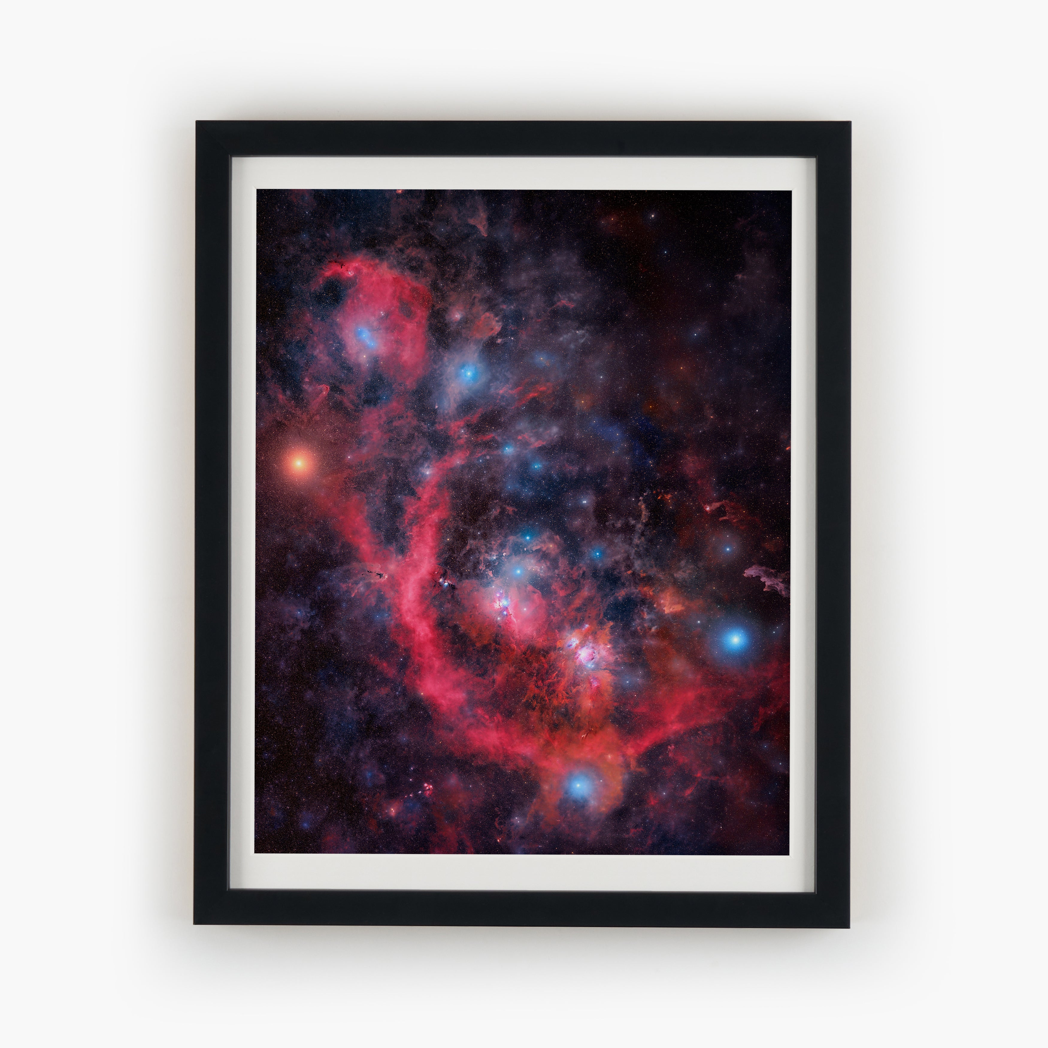 - Framed 11"x14" print measures 10.1"x12.6" total; framed 16"x20" print measures 14.3"x17.9" total (excluding frame and matting)