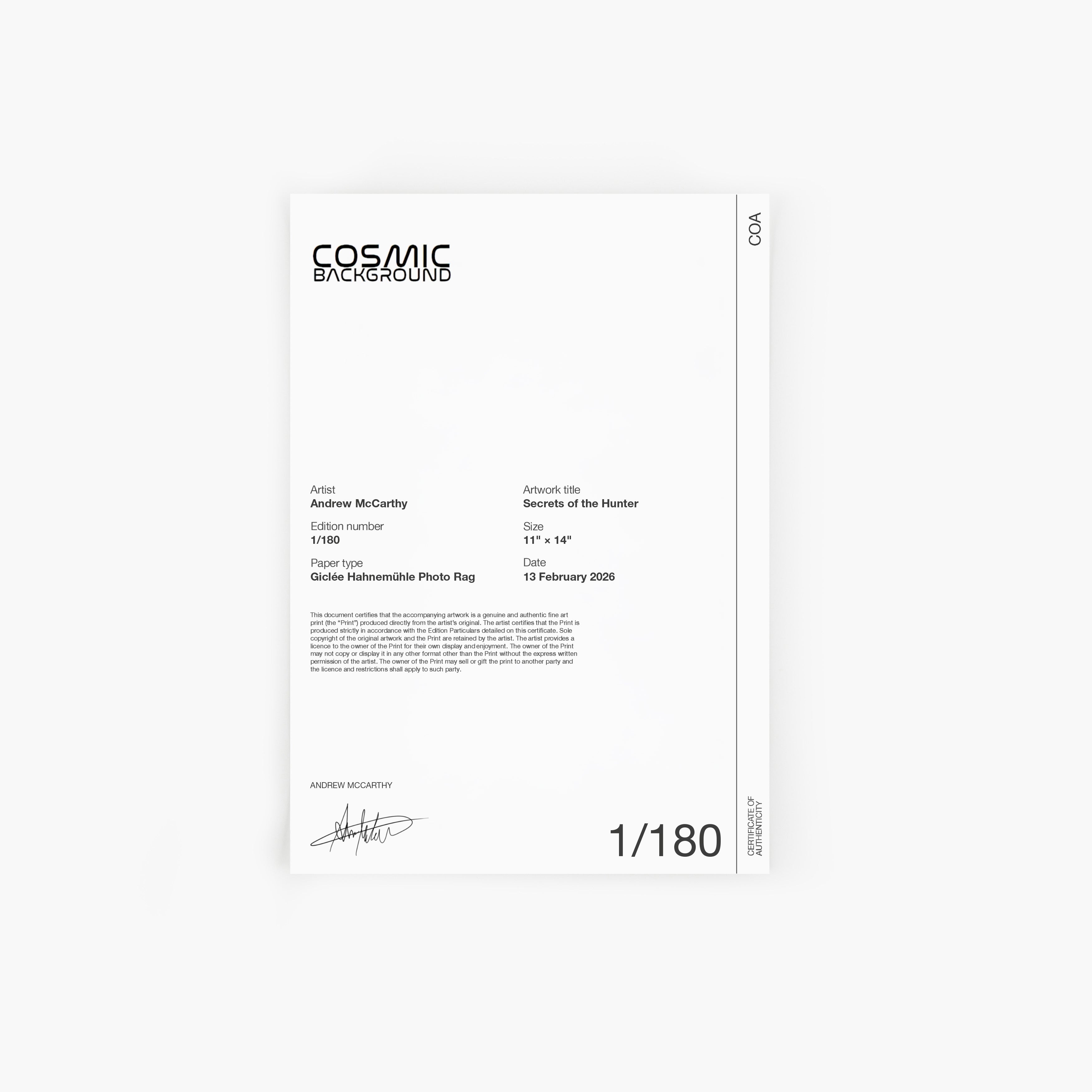 Each artwork comes with an exclusive Certificate of Authenticity (COA), signed and editioned. Safe, express delivery guaranteed worldwide.